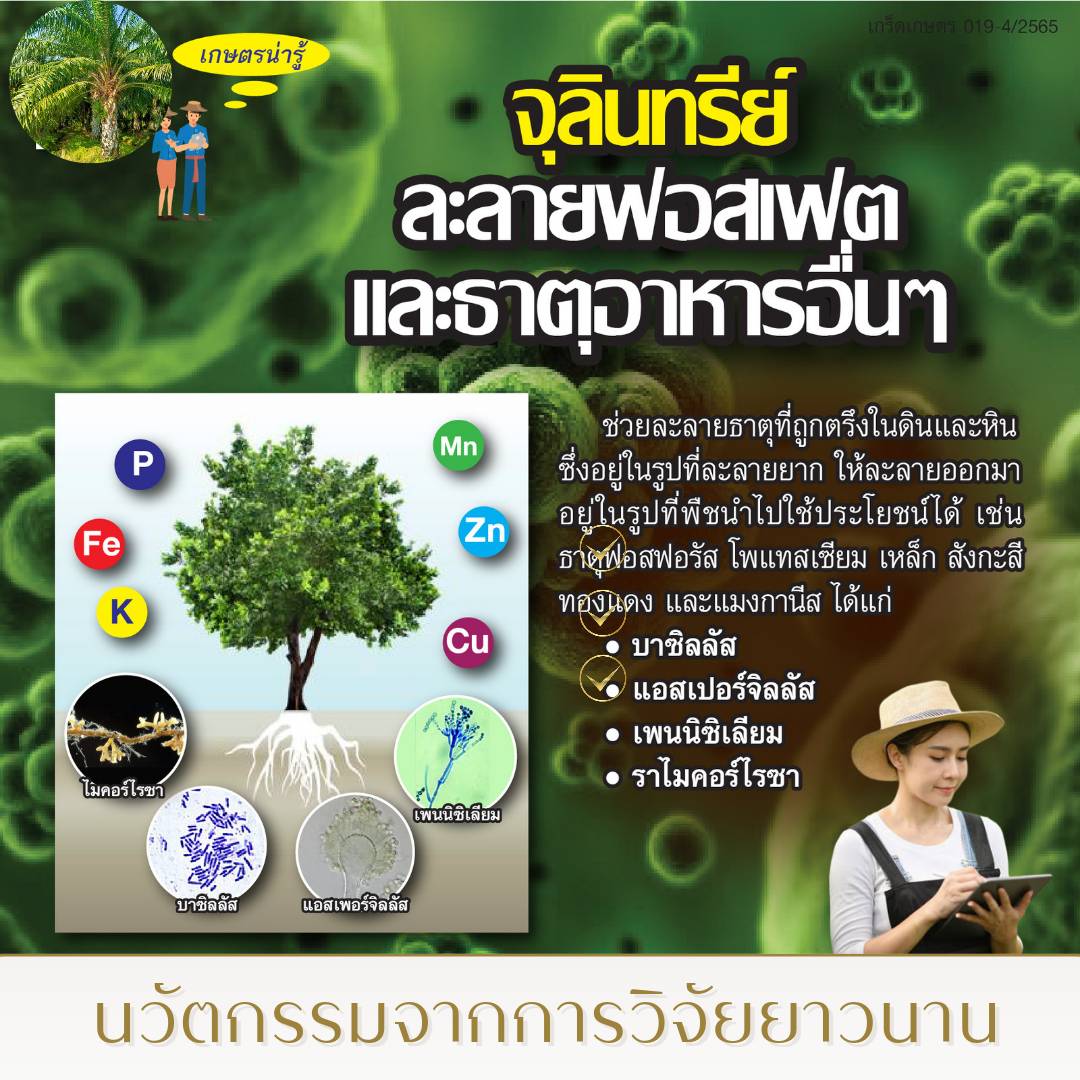 จุลินทรีย์ที่จะทำหน้าย่อยสลาย วัสดุสารอินทรีย์ต่างๆ ให้เป็นธาตุอาหารเกิดการหมุนเวียนธาตุอาหารกลับมาใช้ใหม่ เพิ่มความเป็นประโยชน์ของธาตุอาหารพืช และการแปรสภาพอนินทรีย์ สารหรือแร่ธาตุจากรูปที่ไม่เป็นประโยชน์ให้อยู่ในรูปที่เป็นประโยชน์กับพืช (Solubilization) การผลิตสารที่ส่งเสริมการเจริญเติบโตของพืช การช่วยทำให้ดินจับตัวกันเป็นเม็ดและมีความเสถียร